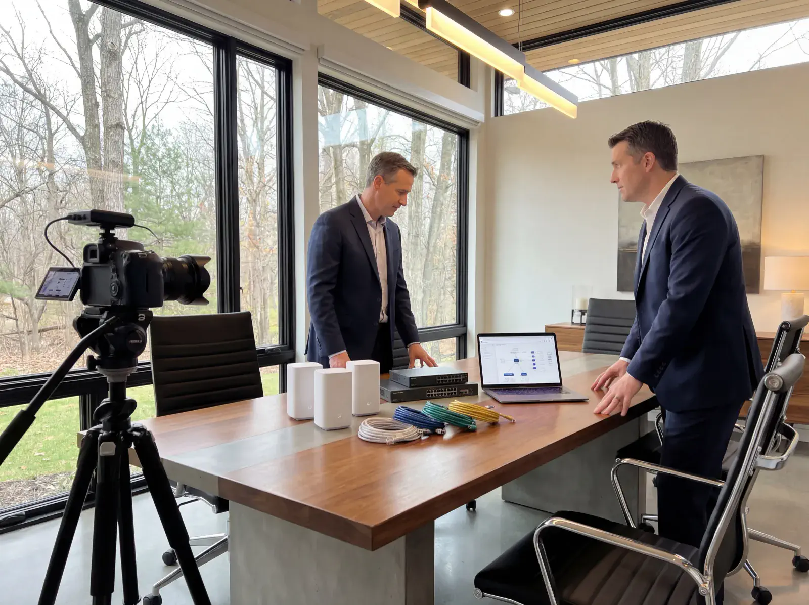 Our rollout begins with a site survey and design map, followed by cabling, switch setup, and access point placement. We test every zone to confirm speed and stability.