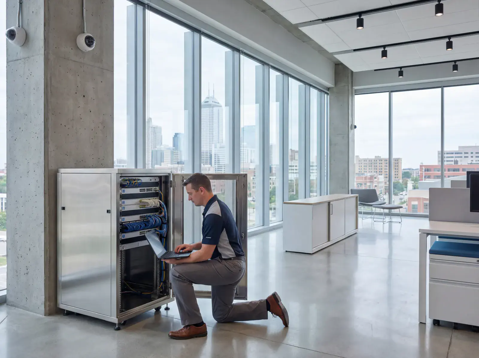 Yes. We standardize equipment, create centralized dashboards, and schedule quarterly health checks so Indianapolis, Carmel, and statewide sites stay aligned.